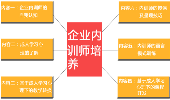 第二部分:课程收益 1、能够陈述内训师的价值、定位、素质模型与常见的授课难题,能够选择基于成人学习心理下全新的教学方法; 2、能够建立和开发一套基于需求为导向的授课课件,让培训真正起到支撑战略、能力推拉、文化落地的作用; 3、能够示范和操作符合内训师的呈现方法,在克服紧张情绪、合理使用教具、提升表达能力、处理突发事件、合理着装、课程互动与启发学员等能力上有直接的改善和提升。 4、能够学会内训师所必须具备的语言模式,并能够根据不同的场景选择使用,能够对不同的语言模式进行示范和演练。